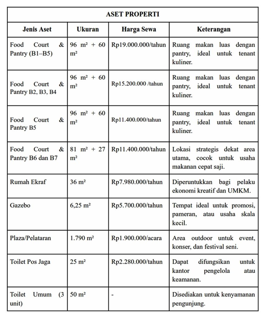 ideal bagi kegiatan usaha, pameran seni, kuliner, dan event outdoor dengan daya