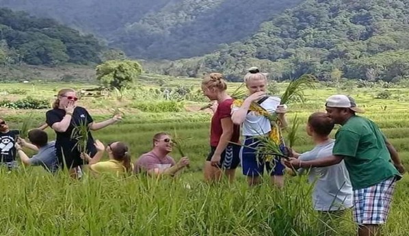 Suasana kebersamaan dan keceriaan wisatawan dan warga setempat saat terlibat langsung dalam panen padi di Desa Wisata Waturaka, Ende dan Panen perdana Melon Emas (Varietas Alia F1) hasil inovasi pertanian berbasis teknologi. Sumber : Istimewa